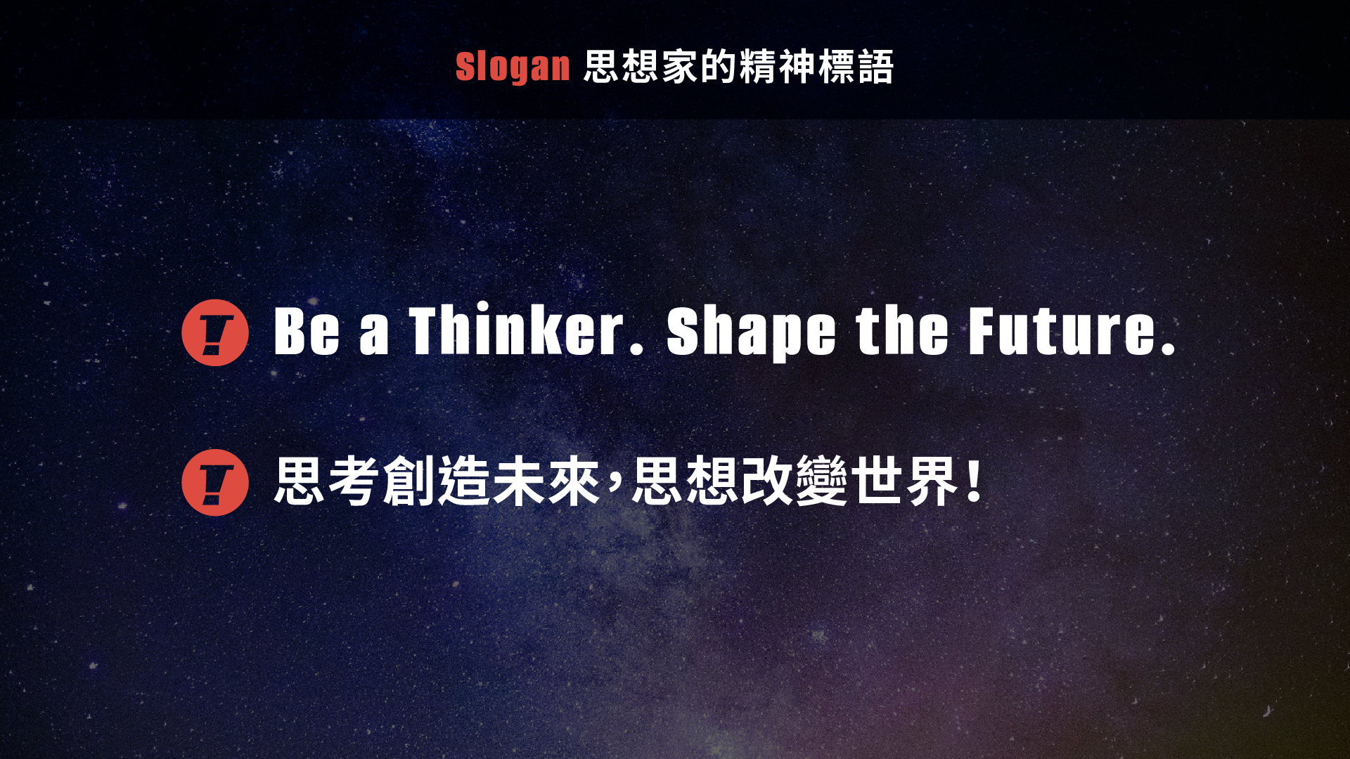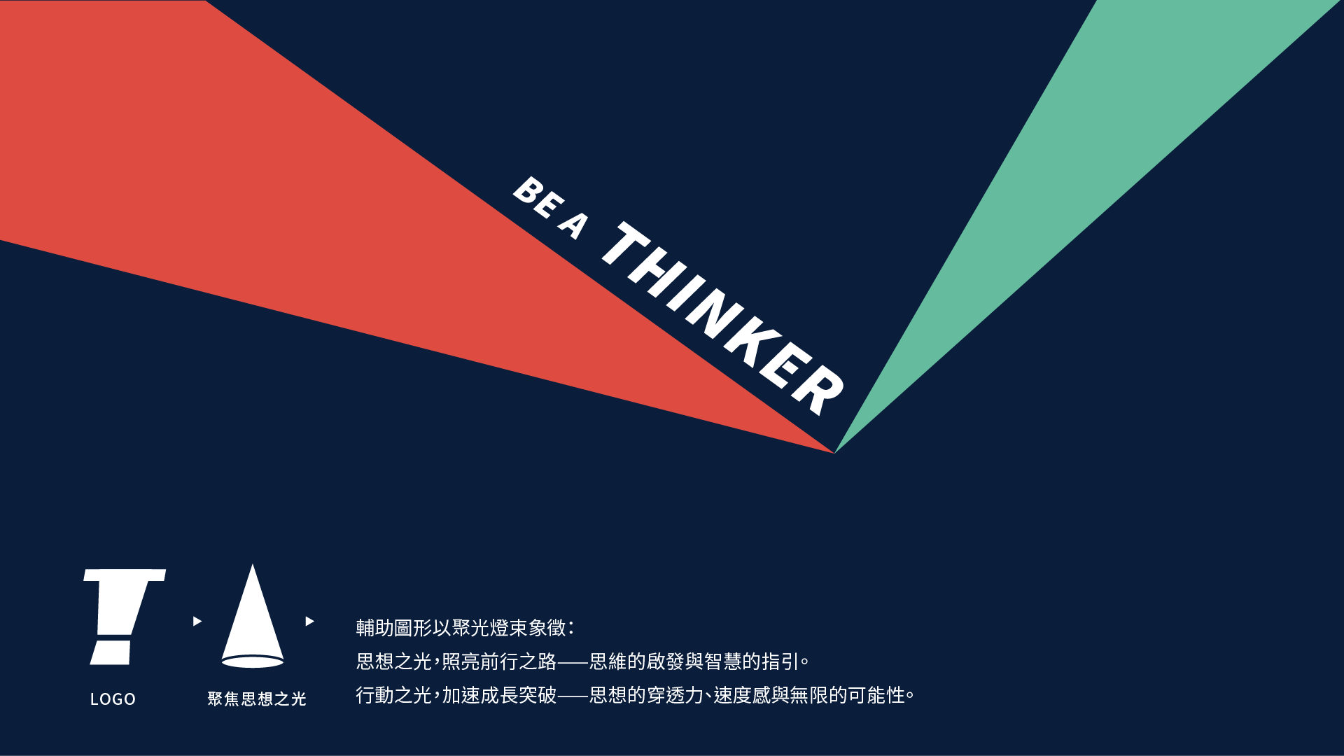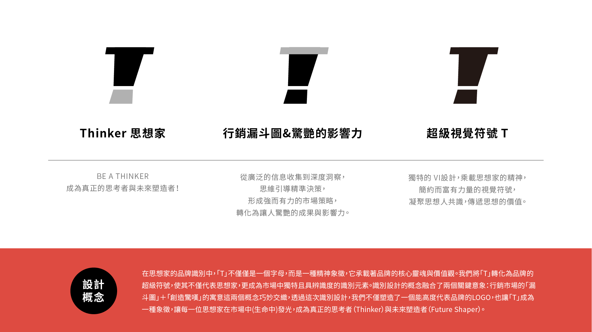 從「思想」出發,將抽象的思維成為可被理解的視覺語言。以 Thinker 的首字母 T 為核心,延伸結